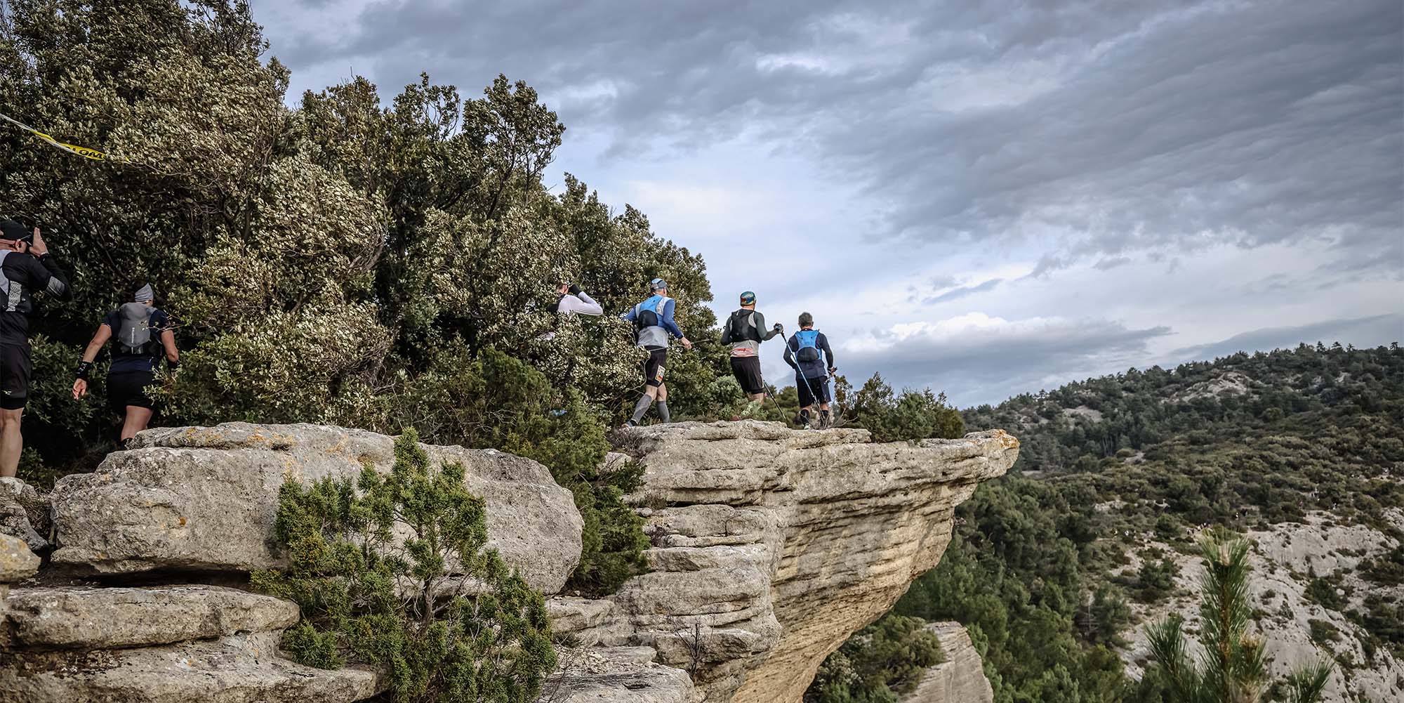 Vous partez en direct vers le sommet par la très sauvage Baume du chat afin de rejoindre au km 7 la trace et le balisage du championnat de France Trail long que vous suivez jusqu’au bout. Après le passage au sommet, vous entamez la descente par la crête puis par les Jas. Une descente non linéaire et ponctuée de ci de là de petites côtes ! Vous rejoignez votre stand personnel ainsi que l’espace de ravitaillement de l’organisation.